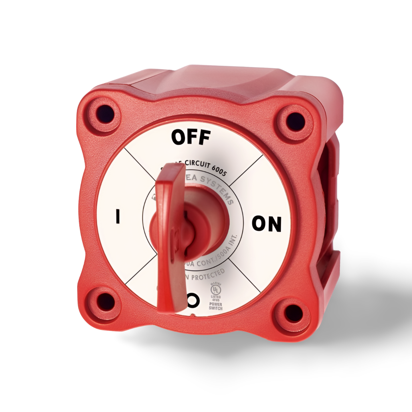 Blue Sea BS 6005 Mini ON-OFF Batterieschalter schaltet eine einzelne Batterie auf eine einzige Lastgruppe und verfügt über einen abnehmbaren Schlüssel.