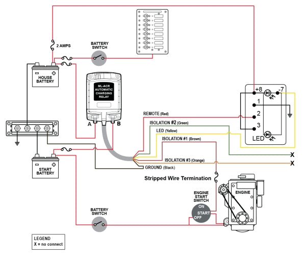 um die Leistung zu teilen. - Start Isolierung - Anlassen des Motors - Relais öffnet isolierende Batterien