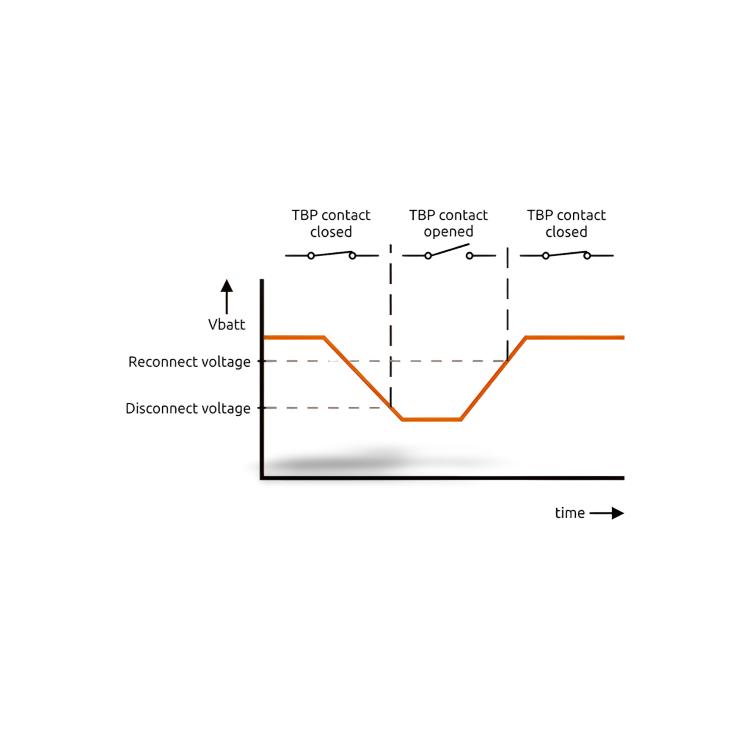 Als Magnet-Latch-Relais mit Dauerstrom (350A bei 48V) zeichnet sich das TBP durch seinen extrem niedrigen Eigenverbrauch (< ) aus. Im Notfall bietet der Override-Modus eine 1-minütige Überbrückung, um das System zu starten oder ein Ladegerät anzuschließen. Dank IP65-Schutz und ISO 8846 Zündschutz ist das TBP perfekt in die DC Modular-Reihe integrierbar und liefert maximale Sicherheit für Marine- und Off-Grid-Systeme.