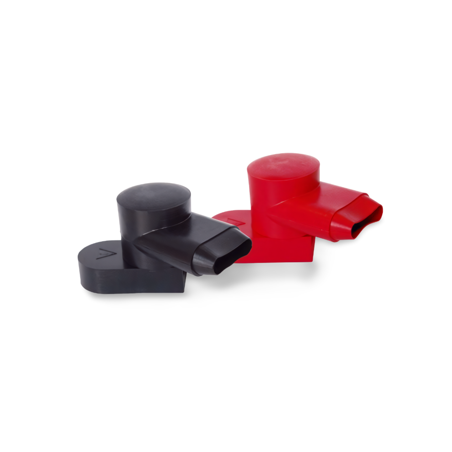 Isolierte Batterieklemmen mit eingebauter Flügelmutter.