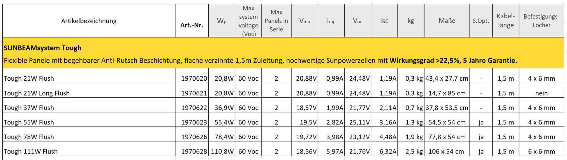 Die spezielle Tough Strukturoberfläche sorgt für einen sicheren Halt, fängt aber auch mehr Licht bei flachen Sonnenwinkeln ein. Darüber hinaus sind alle Tough Modelle ab 55W mit der Shadow Optimized Technologie ausgestattet, die die Leistung bei Teilbeschattung verbessert.